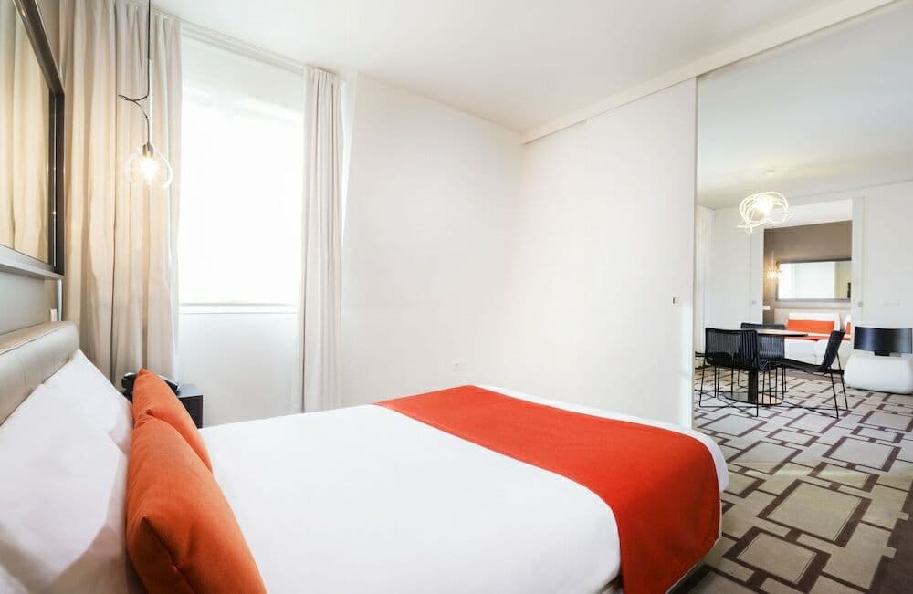 L'établissement propose 210 appartements climatisés, allant du studio au 3 pièces. Pour vos moments de pause, l'hôtel dispose d'une piscine extérieure chauffée pour les beaux jours, d'un espace fitness et d'un sauna. Le design est sobre, moderne et particulièrement soigné, offrant une atmosphère sereine après l'effervescence des attractions.